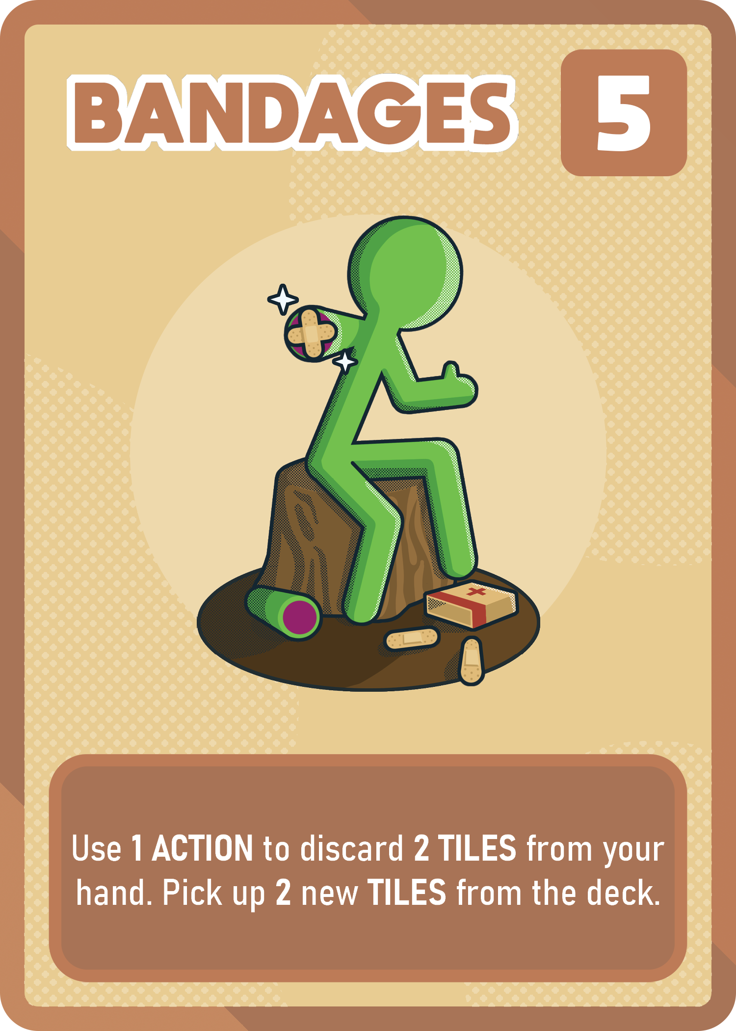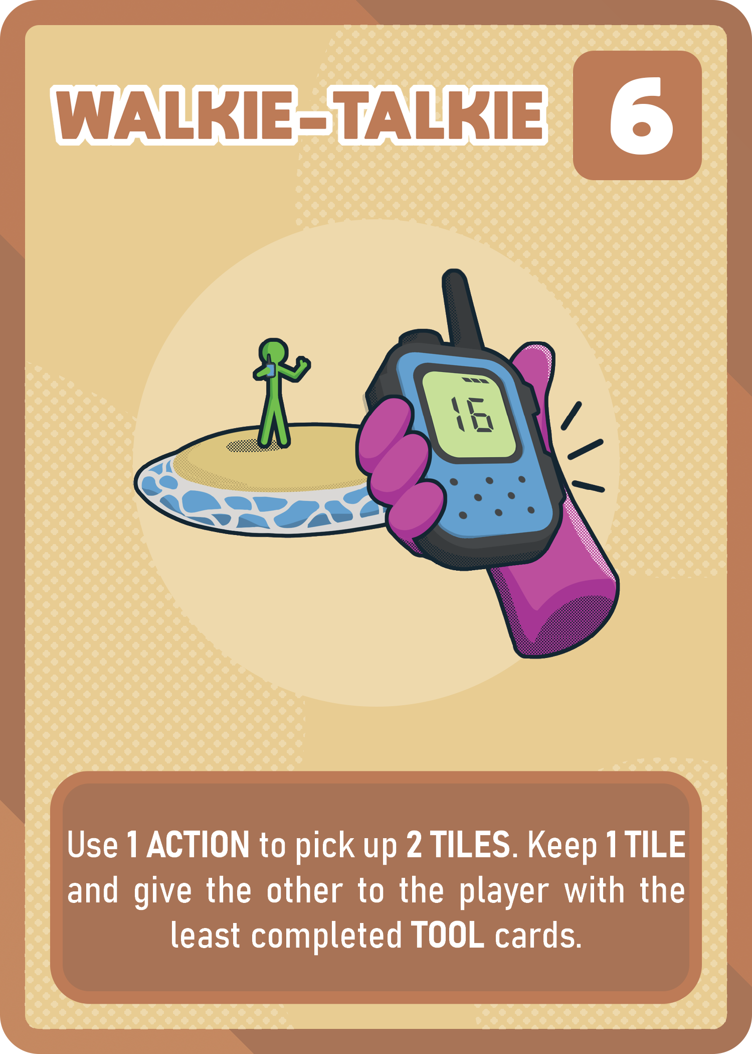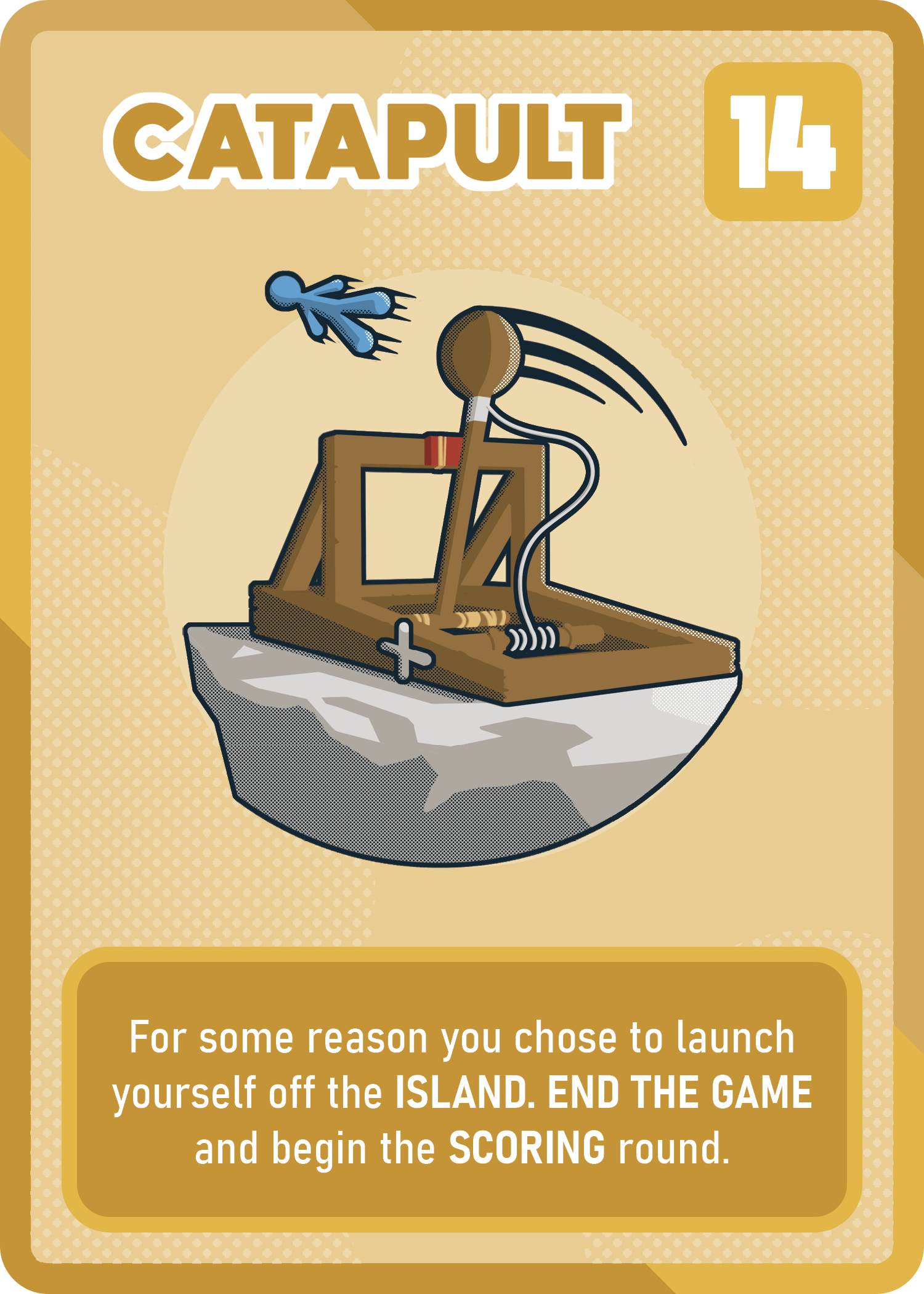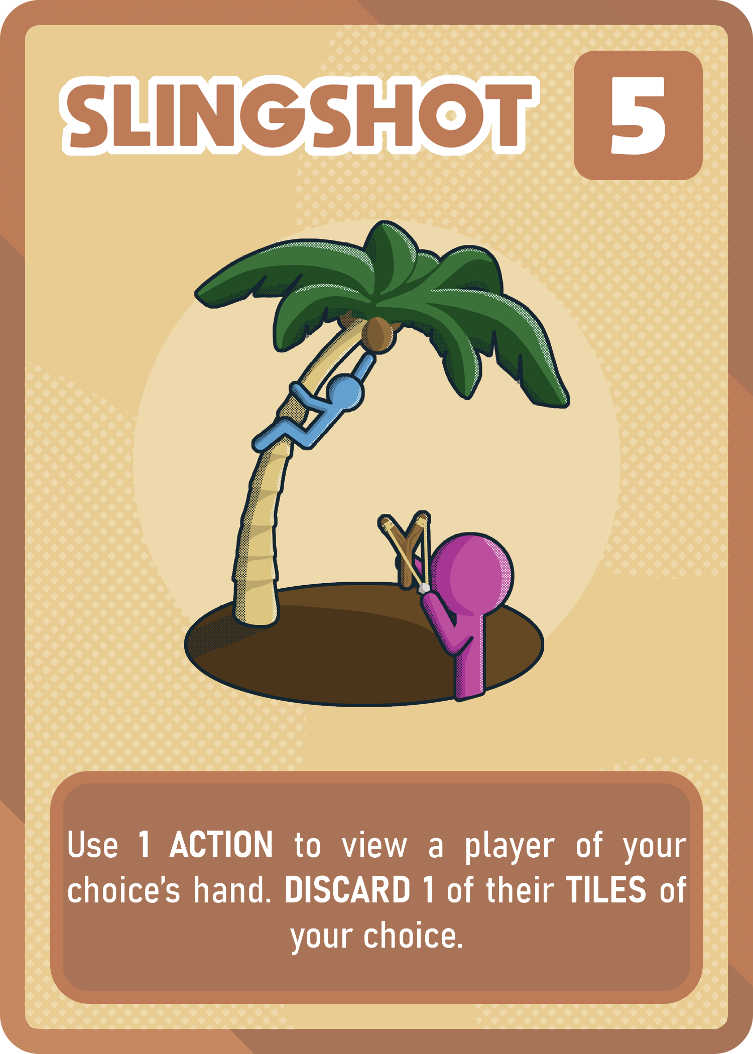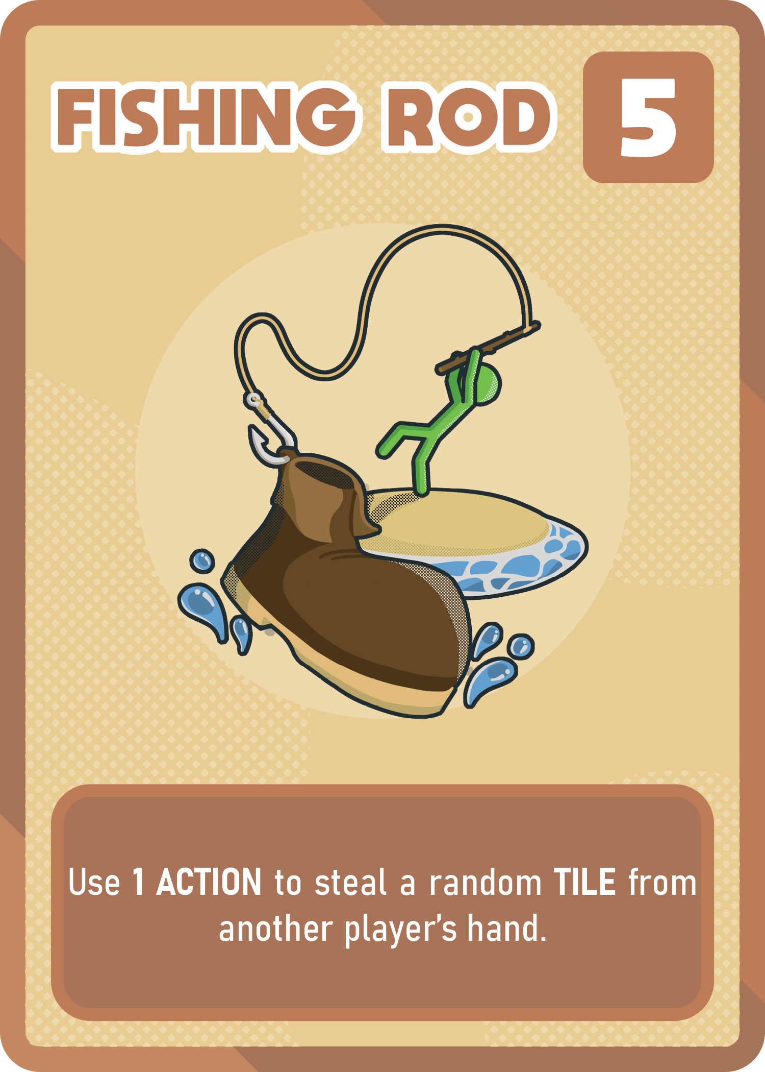 Crafty Castaways is a 3-4 player competitive card game where players aim to be the first castaway to escape a deserted island. They do so by completing tool patterns with island tiles, awarding them points and new abilities. Players will soon map out entire islands with these tiles, but they must be cautious, as other players might make use of the tiles they've placed to craft their own tools.